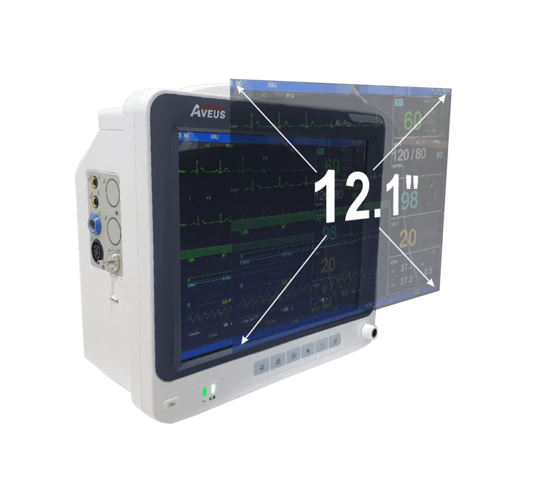 The AV-PRO Patient Monitor is a compact, high-performance multiparameter monitor designed for hospitals, clinics, and medical centers in the UAE. Built with simplicity and precision in mind, it features a 12.1″ color TFT LCD display for clear multi-channel waveform visualization and easy operation through dedicated function keys and simplified menus.